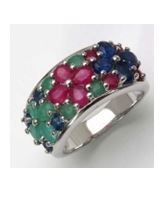 STERLING SILVER BRAZILIAN SAKOTA EMERALD, RUBY AND SAPPHIRE RING