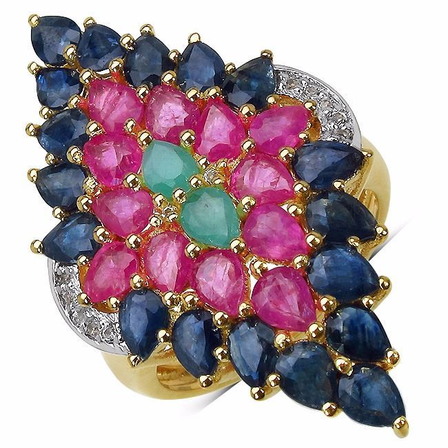 STERLING SILVER BRAZILIAN SAKOTA EMERALD, RUBY AND SAPPHIRE RING