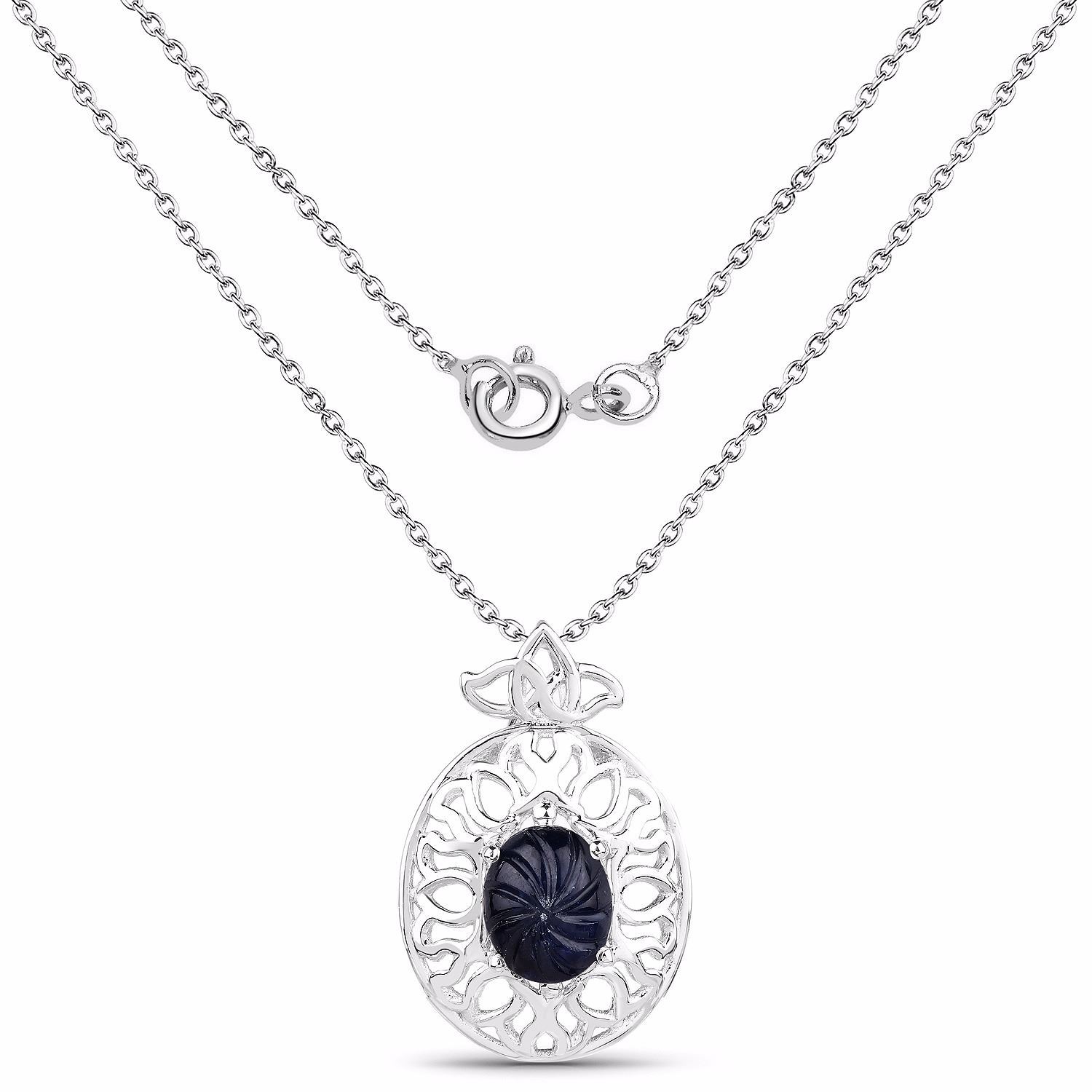 STERLING SILVER CABOCHON BLACK SAPPHIRE PENDANT