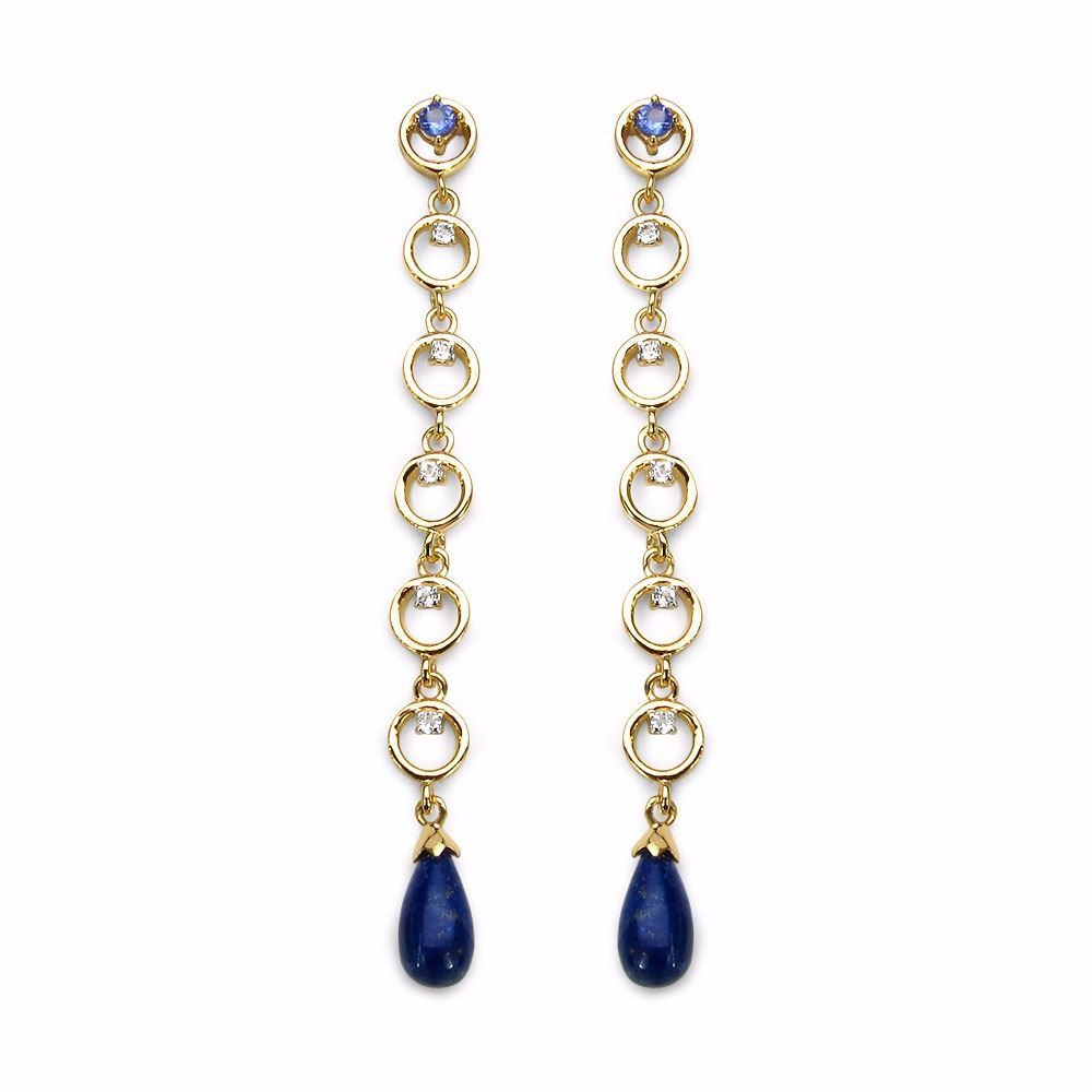 STERLING SILVER CABOCHON LAPIS AND TANZANITE DROP EARRING