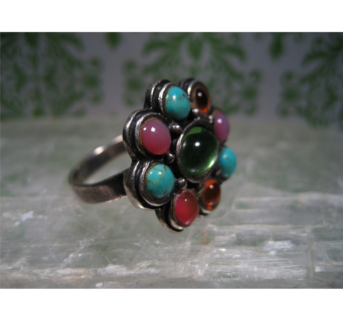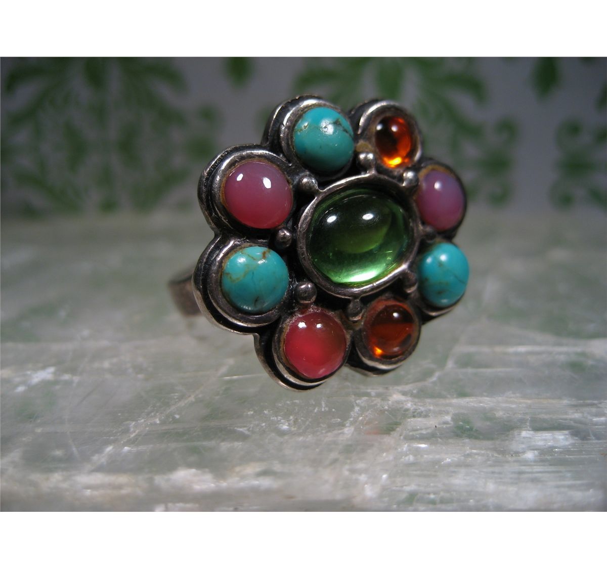(1) STERLING SILVER CABOCHON MULTI STONE RING SIZE 9 T.W. 9.3 GRAMS