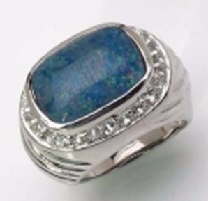 Gemstone Description: Triplet Opal Cabochon Cushion 16x12mm - 1Pc + White Topaz Round 2.00mm - 26Pcs ( Center Stone Height : 4.00mm )