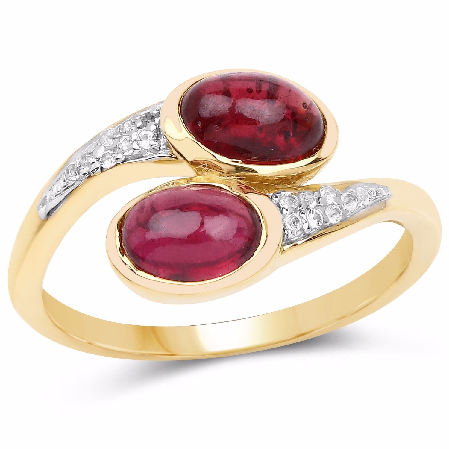 Gemstone Description: Ruby Cabochon Oval 7x5mm - 2Pcs + White Topaz Round 1.00mm - 16Pcs ( White Pan Rhodium )