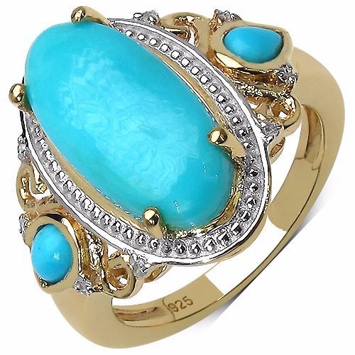 Gemstone Description: Turquoise Cabochon Oval 16x8mm - 1Pc + Turquoise Cabochon Pears 4x3mm - 2Pcs + White Topaz Round 1.00mm - 8Pcs ( Center Stone Height : 3.10mm ) ( White Pan Rhodium )