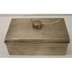 STERLING SILVER CASED BOX WITH LID. Marked on bottom "Sterling-39-Bailey Banks & Biddle Co." with hallmark. Box has wooden interior with Sterling casing. Lid is Sterling. 2.5" H, 6.25", 3.5" D