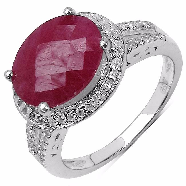 Gemstone Description: Ruby Checker Board Oval 11x9mm - 1Pc + White Topaz Round 0.90-1.00mm - 56Pcs ( Center Stone Height: 5.00mm )