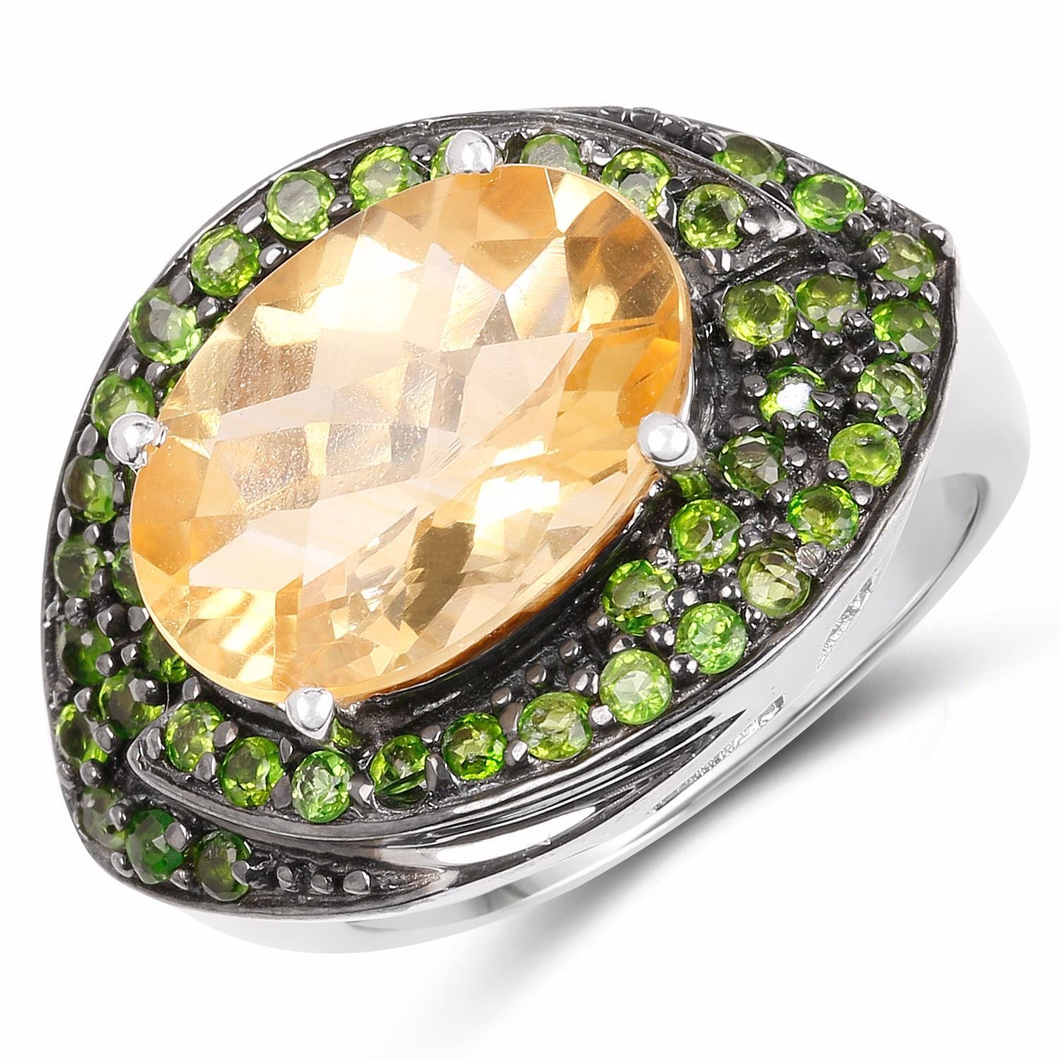 STERLING SILVER CHECKERBOARD CITRINE AND CHROME DIOPSIDE RING