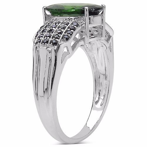 STERLING SILVER CHROME DIOPSIDE AND BLACK SPINEL RING