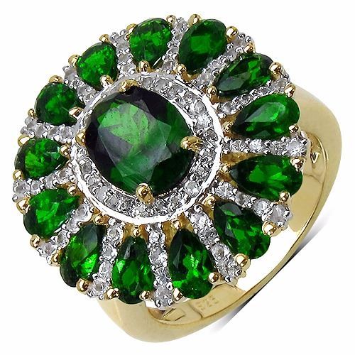 Gemstone Description: Chrome-Diopside Oval 9x7mm - 1Pc + Chrome-Diopside Pears 5x3mm - 13Pcs + White Topaz Round 1.10mm - 52Pcs + White Topaz Round 1.00mm - 24Pcs ( White Pan Rhodium Plating )