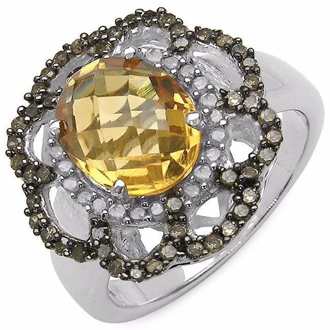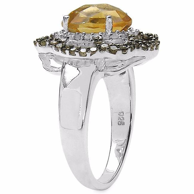 STERLING SILVER CITRINE AND COLOR DIAMOND RING