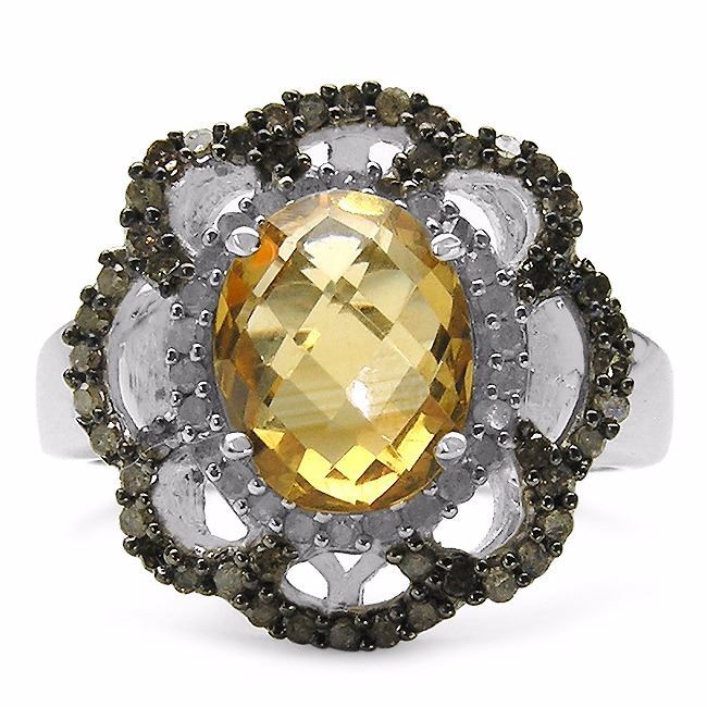 Gemstone Description: Citrine Briolite Oval 10x8mm - 1Pc + Champagne Diamond Single Cut Round 1.10mm - 48Pcs + White Diamond Single Cut Round 1.10mm - 26Pcs ( Black Pan Rhodium Plating )