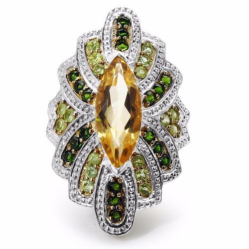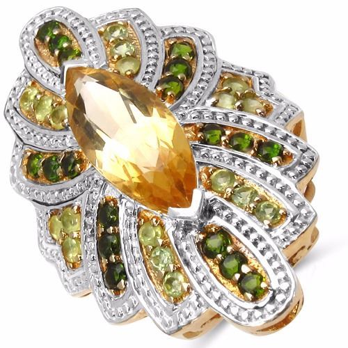 STERLING SILVER CITRINE, PERIDOT AND CHROME DIOPSIDE RING