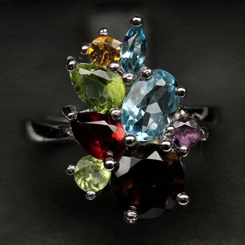 STERLING SILVER CITRINE, PERIDOT, GARNET,QUARTZ, AMETHYST, TOPAZ RING SIZE 6.5"
