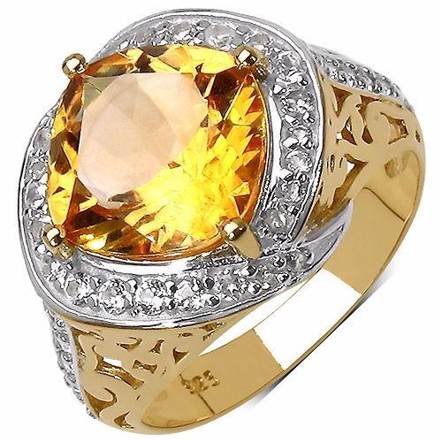 Gemstone Description: Golden Citrine Cushion 10.00mm - 1Pc + White Topaz Round 1.50mm - 38Pcs ( Center Stone Height : 6.00mm ) ( White Pan Rhodium Plating )
