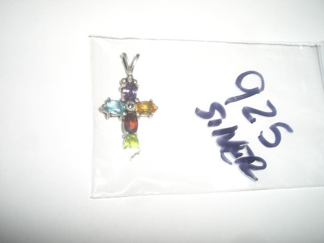 STERLING SILVER CROSS WITH 5 COLORFUL STONES INCLUDING *AMETHYST/CITRINE/BLUE TOPAZ/GARNET/PERIDOT STAMPED *.925*!! PENDANT CAME OUT OF SAFE!! ***Coin, Currency & All Items Listed in this auction - Grades, Conditions and Values are not Safe Deposit Coins LLC Responsibilty. Grades, Condition and Values are determined by Consigner(s) & Buyers ONLY***