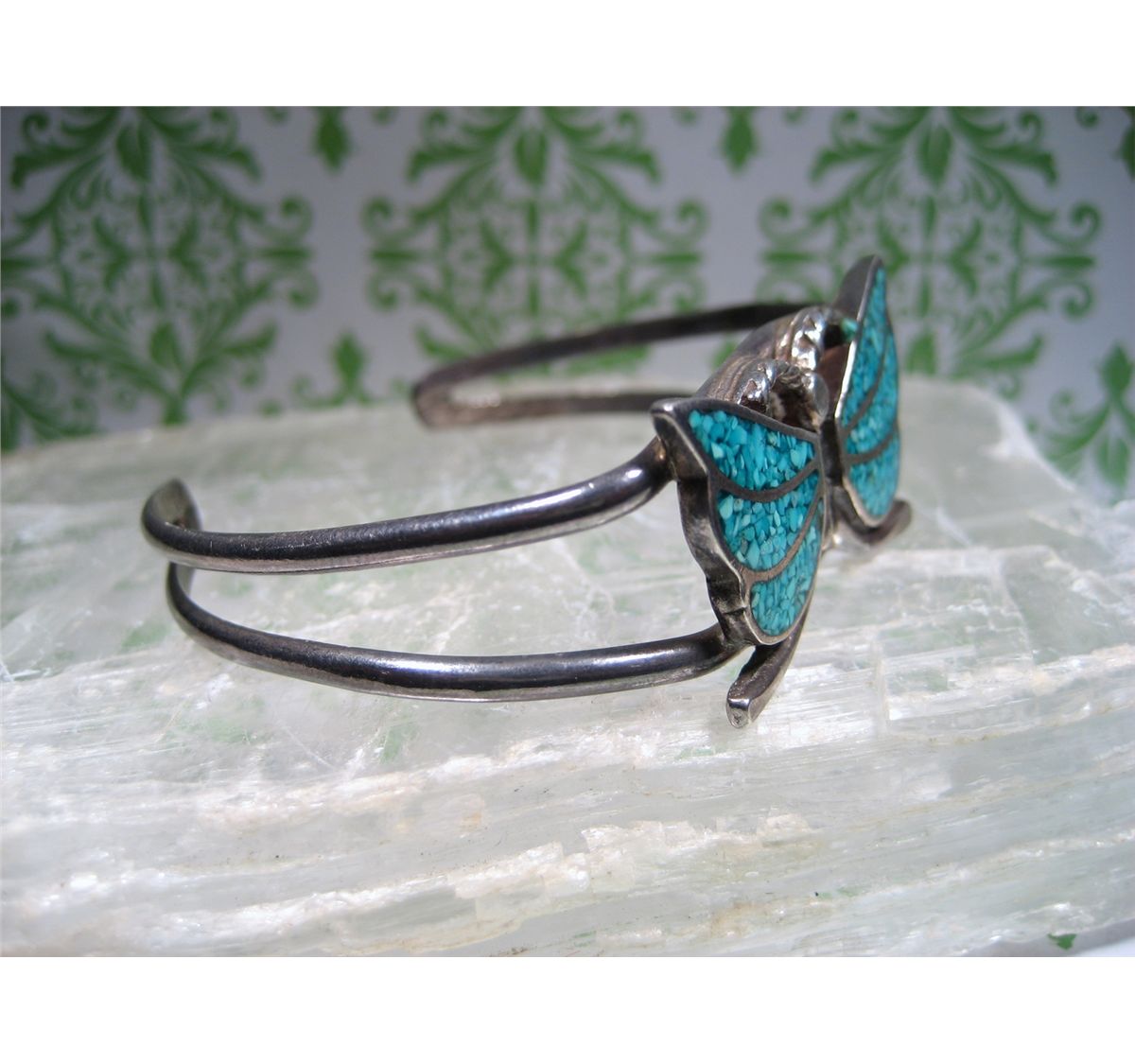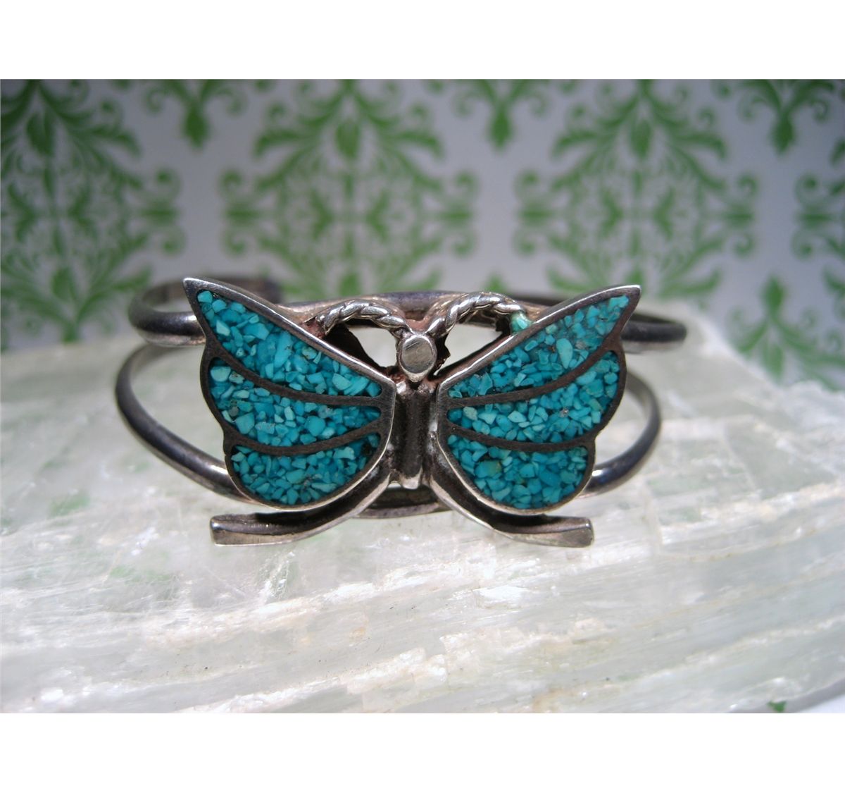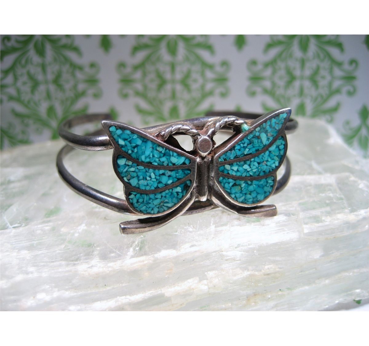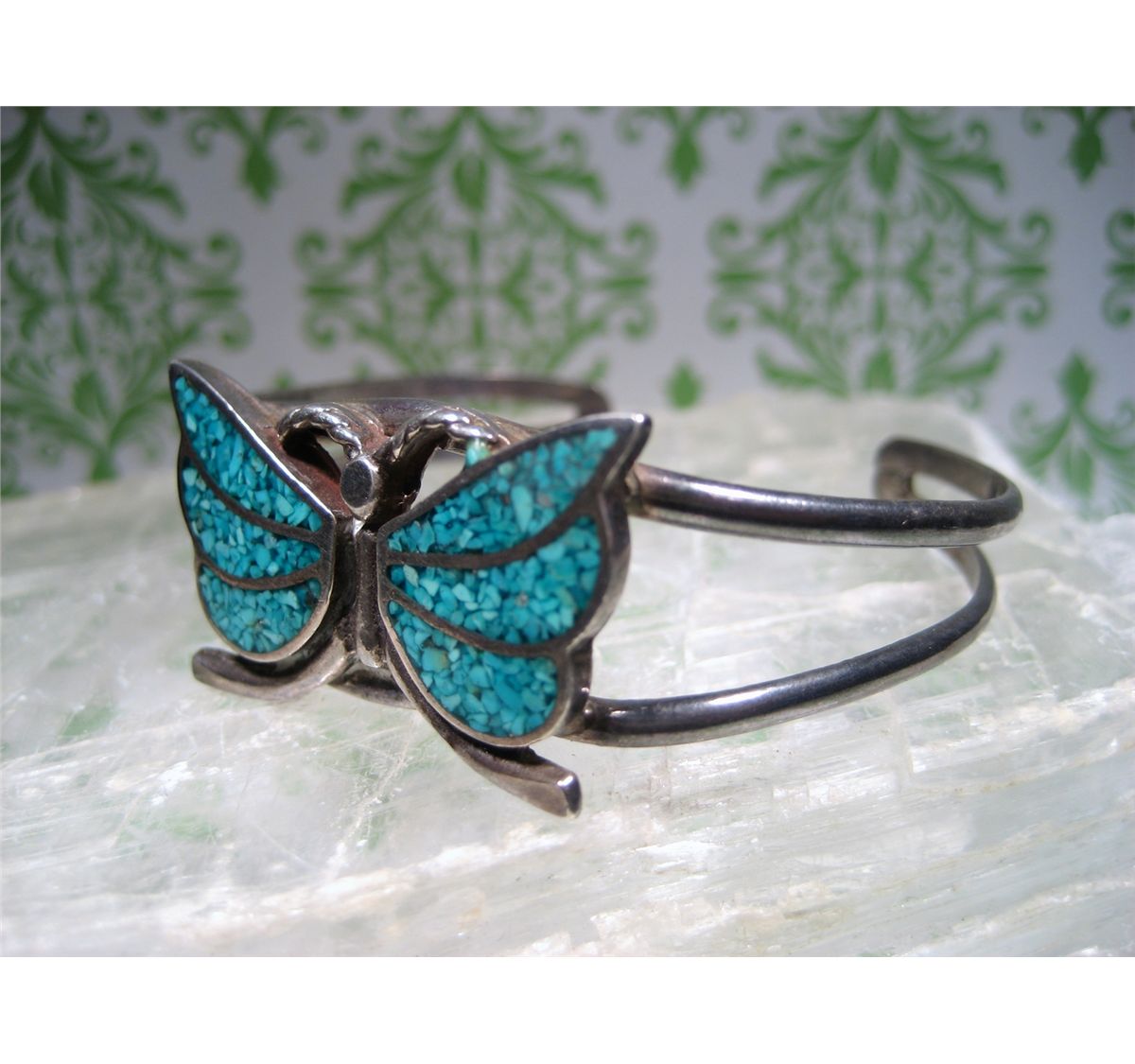 (1) STERLING SILVER CUFF BRACELET WITH CRUSHED TURQUOISE BUTTERFLY T.W. 15.00 GRAMS