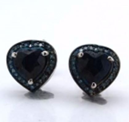 Gemstone Description: Black Blue Sapphire Heart Shape 6.00mm - 2Pcs + Blue Diamond S/C Round 0.80mm - 52Pcs ( Blue Dip )