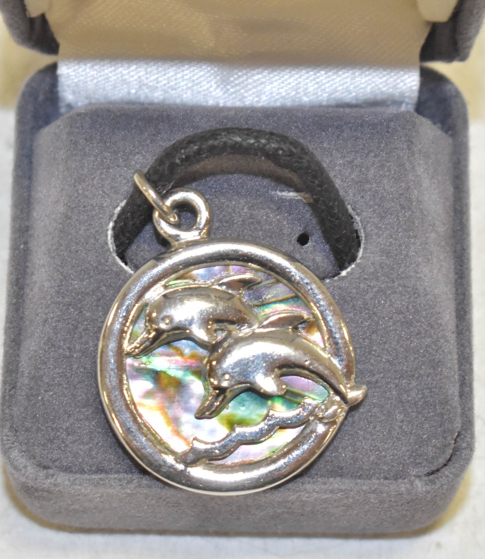 STERLING SILVER DOLPHIN ABALONE PENDANT NECKLACE