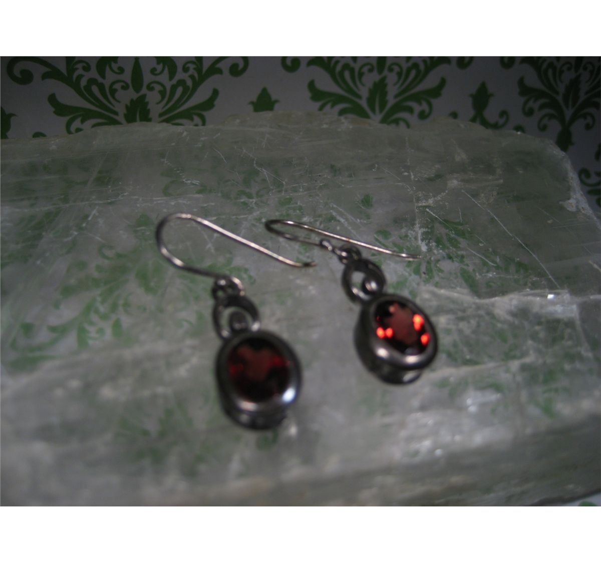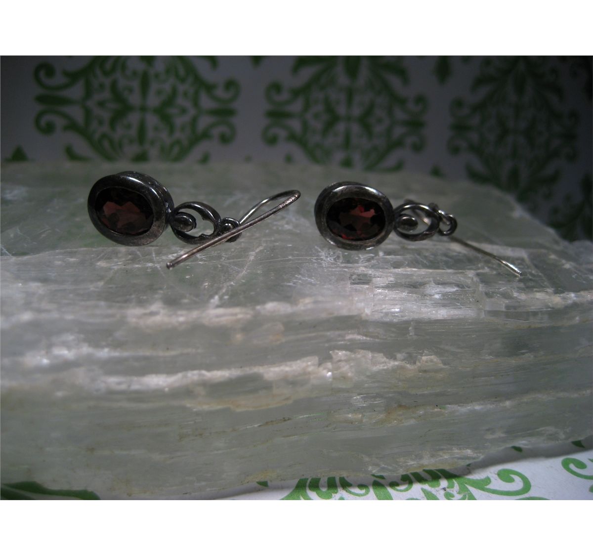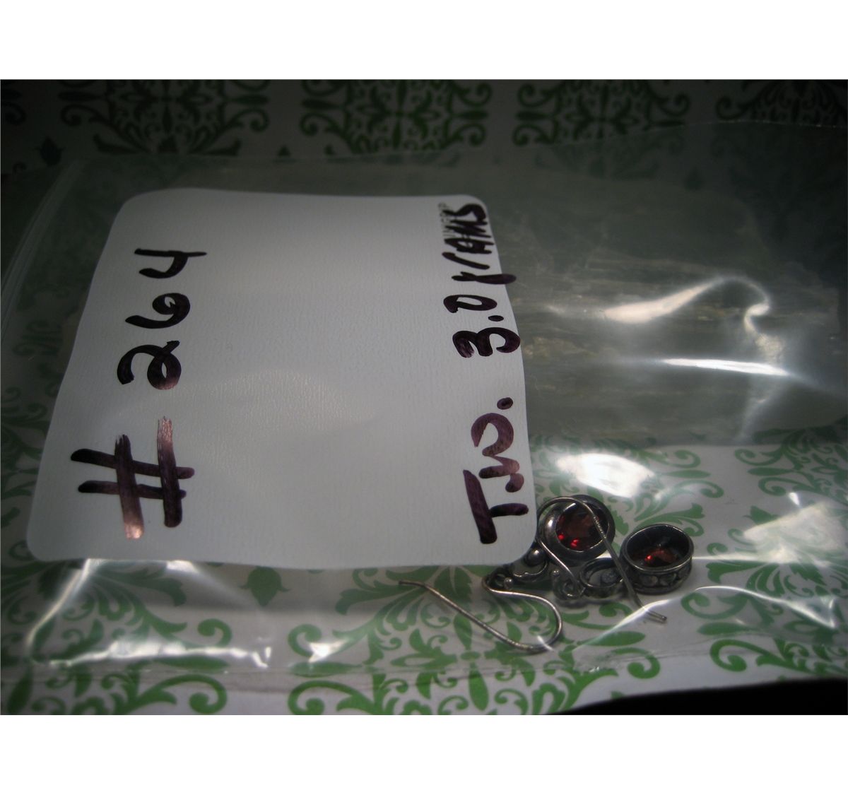 (1) STERLING SILVER EARRINGS WITH RED GARNETS T.W. 3.0 GRAMS