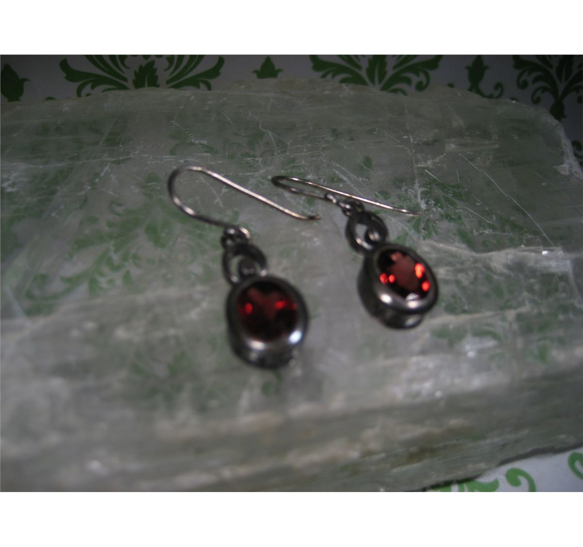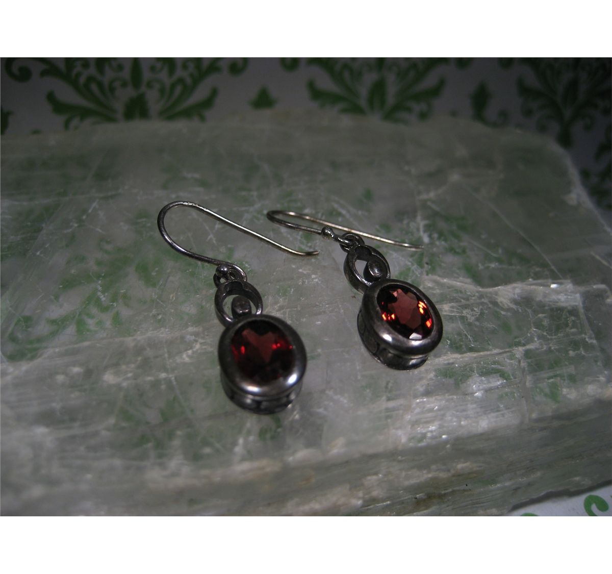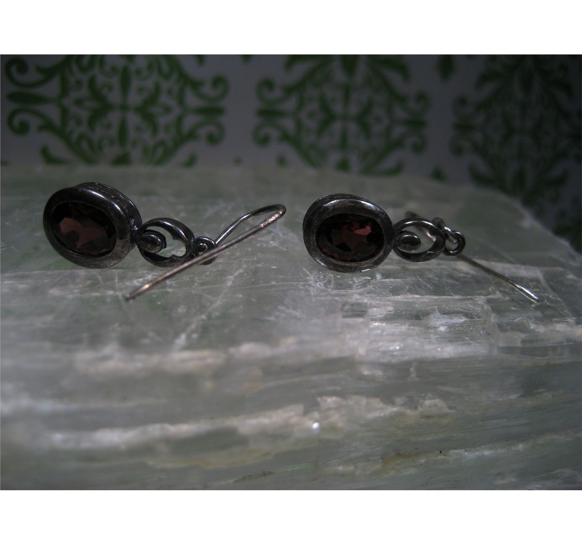 (1) STERLING SILVER EARRINGS WITH RED GARNETS T.W. 3.0 GRAMS
