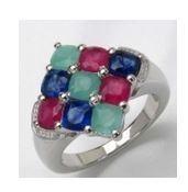 STERLING SILVER EMERALD ,RUBY AND SAPPHIRE RING