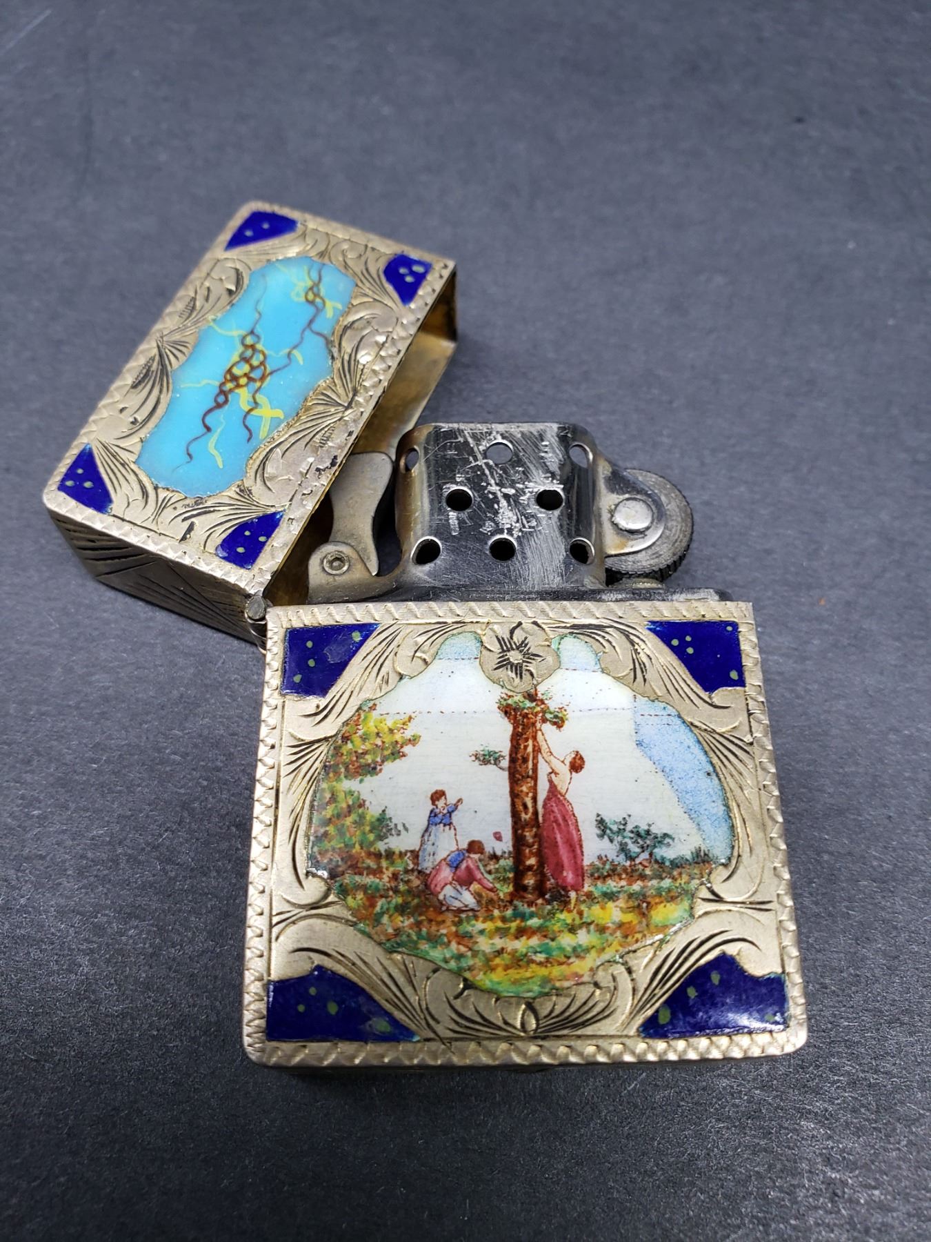 Sterling Silver & Enameled Lighter Piece is 2 1/4" x 1 1/2" All items Located in in Hollywood Florida Warehouse For Shipping Call today for quote they have item numbers and Pak Mail is available for all your custom packaging and shipping needs. We can package, palletize, crate, insure and ship to any Domestic or International location. All packaging and shipping fees must be paid in full before shipment is released. On international shipments, consignee is responsible for all Duties, Taxes, Customs Clearance or any destination fees that apply. Please visit our website @ www.pakmail.com/us770 for contact information or to get a quote. (Let us know you are a winning bidder from the Puckett auction so we can correctly arrange pick up for your item