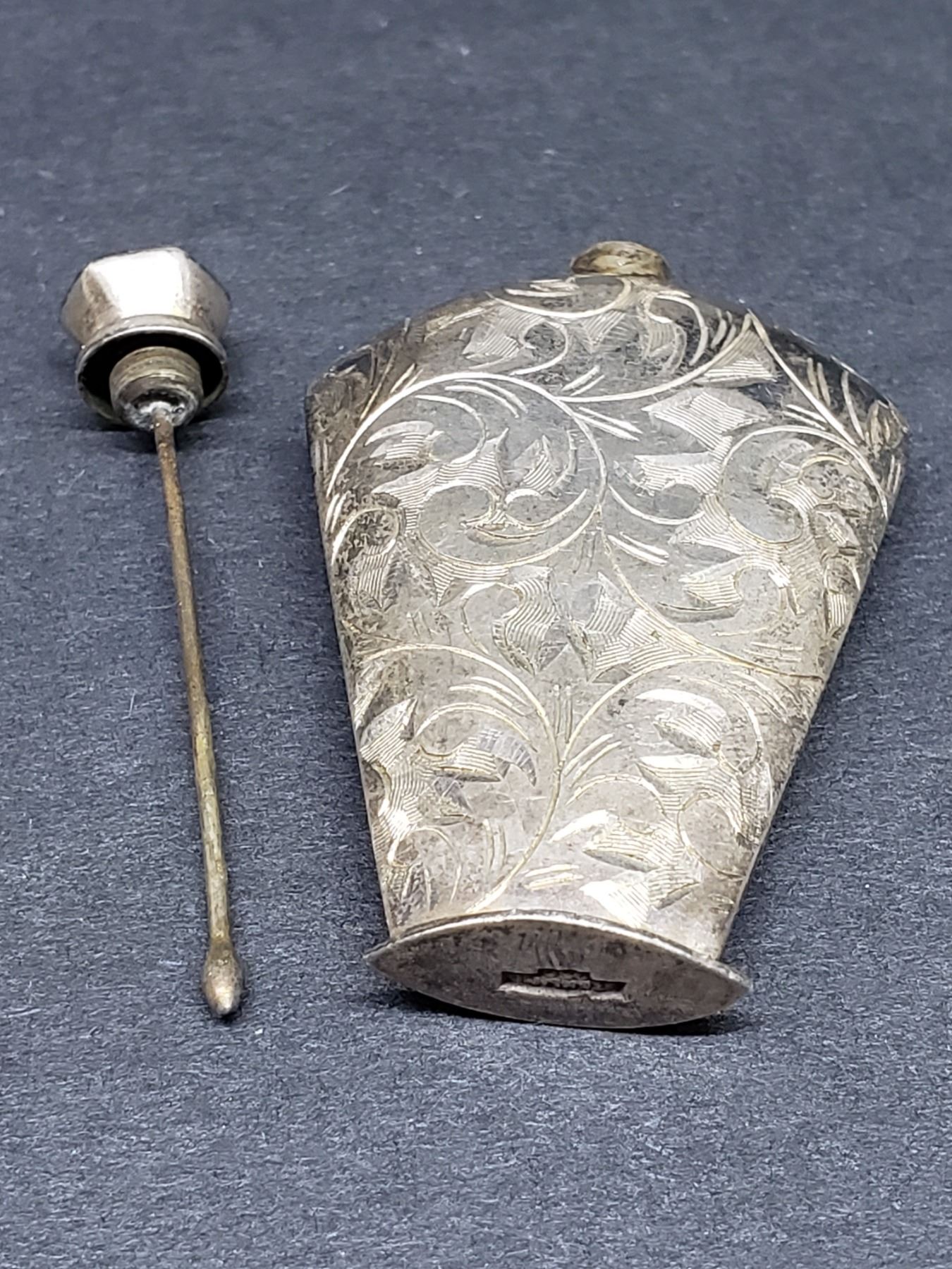 Sterling Silver Engraved Snuff Bottle Piece is 2" x 1 1/4" All items Located in in Hollywood Florida Warehouse For Shipping Call today for quote they have item numbers and Pak Mail is available for all your custom packaging and shipping needs. We can package, palletize, crate, insure and ship to any Domestic or International location. All packaging and shipping fees must be paid in full before shipment is released. On international shipments, consignee is responsible for all Duties, Taxes, Customs Clearance or any destination fees that apply. Please visit our website @ www.pakmail.com/us770 for contact information or to get a quote. (Let us know you are a winning bidder from the Puckett auction so we can correctly arrange pick up for your item
