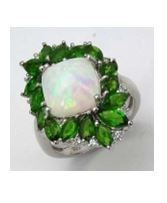 STERLING SILVER ETHIOPIAN OPAL AND CHROME DIOPSIDE RING