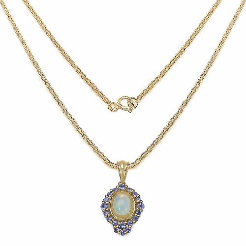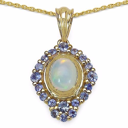 STERLING SILVER ETHIOPIAN OPAL AND TANZANITE PENDANT