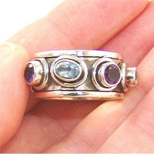 <p>STERLING SILVER Estate AMETHYST AND BLUE TOPAZ Ring Sz 8 -Unisex