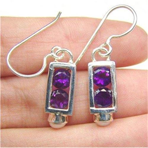 <p>STERLING SILVER Estate AMETHYST PEARL Earrings