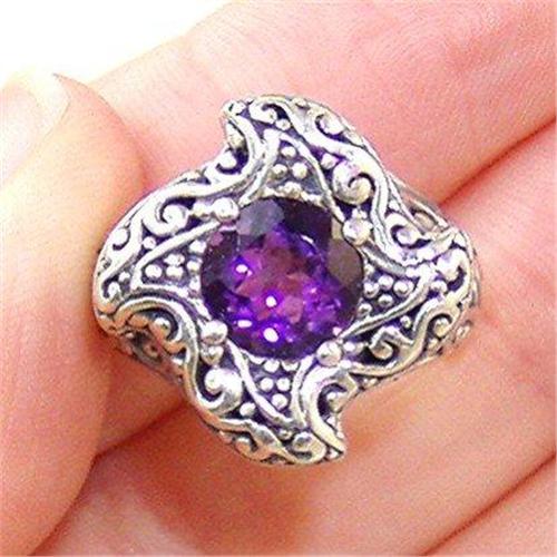 <tr><td>Title:STERLING SILVER Estate CUT AMETHYST Ring Sz 6.5</td></tr>