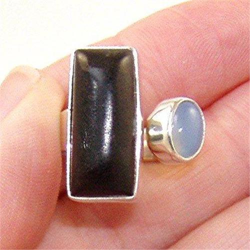 <p>STERLING SILVER Estate EBONY WOOD AND CHALCEDONY Ring Sz 7