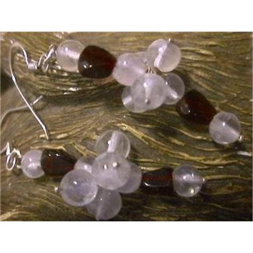 <p>Stunning Garnet and Crystal Clear as Snow Quartz fall Beautifully in these Lovely Earrings.