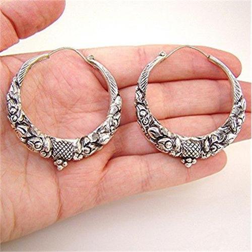 <p>Sterling silver hoop earrings with beautiful detail work.