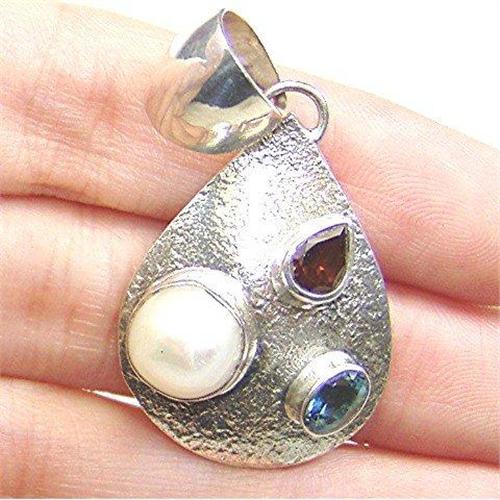 <p>STERLING SILVER Estate PEARL TOPAZ GARNET Pendant