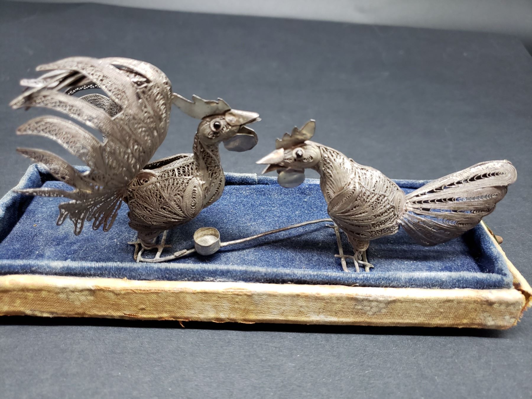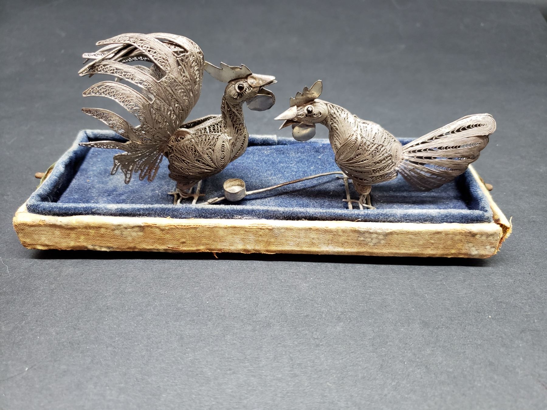 Sterling Silver Fighting Cocks Piece is 7 3/4" x 3 1/4" All items Located in in Hollywood Florida Warehouse For Shipping Call today for quote they have item numbers and Pak Mail is available for all your custom packaging and shipping needs. We can package, palletize, crate, insure and ship to any Domestic or International location. All packaging and shipping fees must be paid in full before shipment is released. On international shipments, consignee is responsible for all Duties, Taxes, Customs Clearance or any destination fees that apply. Please visit our website @ www.pakmail.com/us770 for contact information or to get a quote. (Let us know you are a winning bidder from the Puckett auction so we can correctly arrange pick up for your item