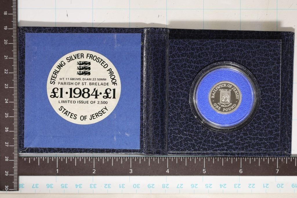 LIMITED EDITION OF 2500 ONE POUND PROOF COIN IN HARD PLASTIC CAPSULE AND BLUE FLIP CASE.