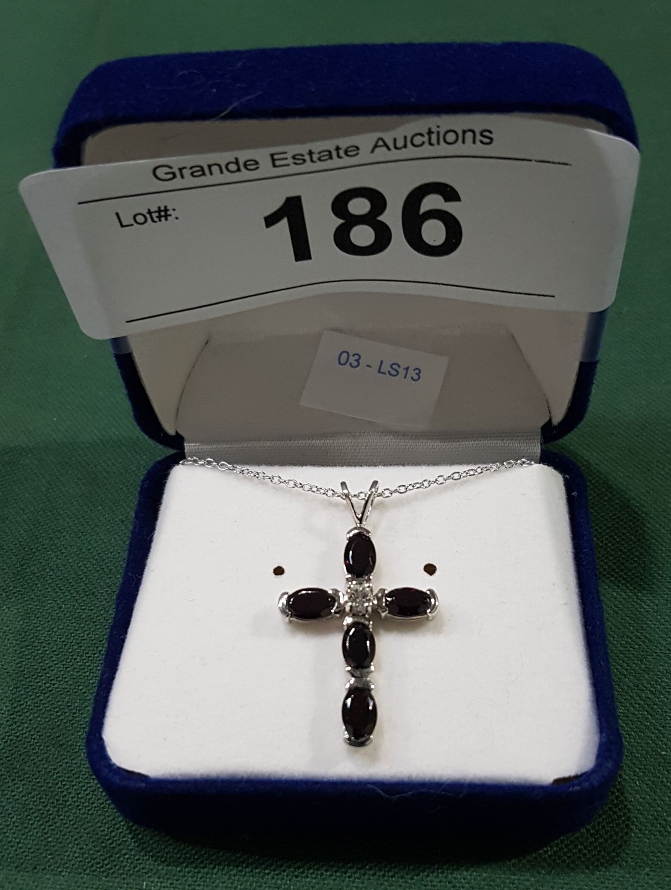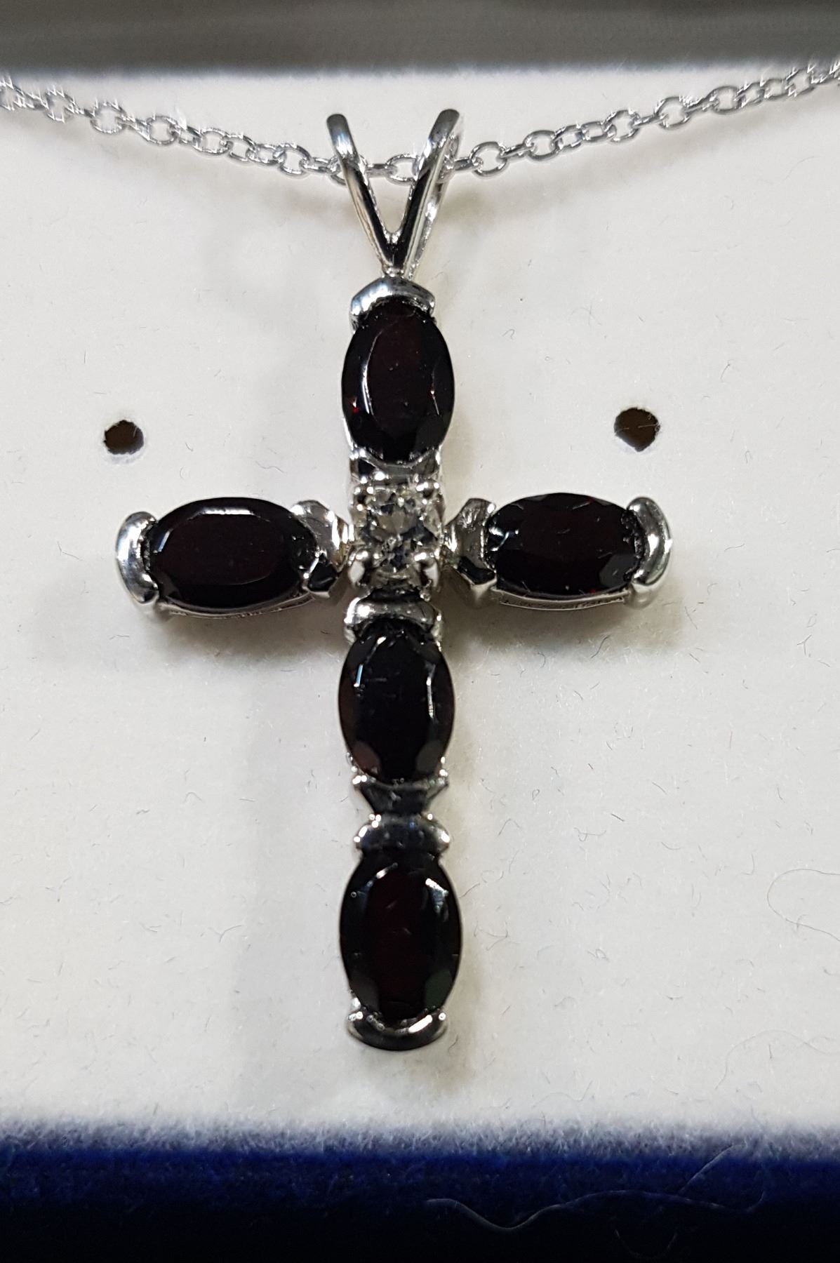 STERLING SILVER GARNET CROSS PENDANT W/CHAIN
