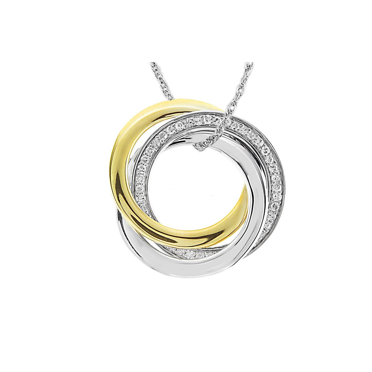 STERLING SILVER GOLDPLATED DIAMOND 3-INTERLOCK CIRCLE PENDANT (#7254D) TOTAL CT WEIGHT