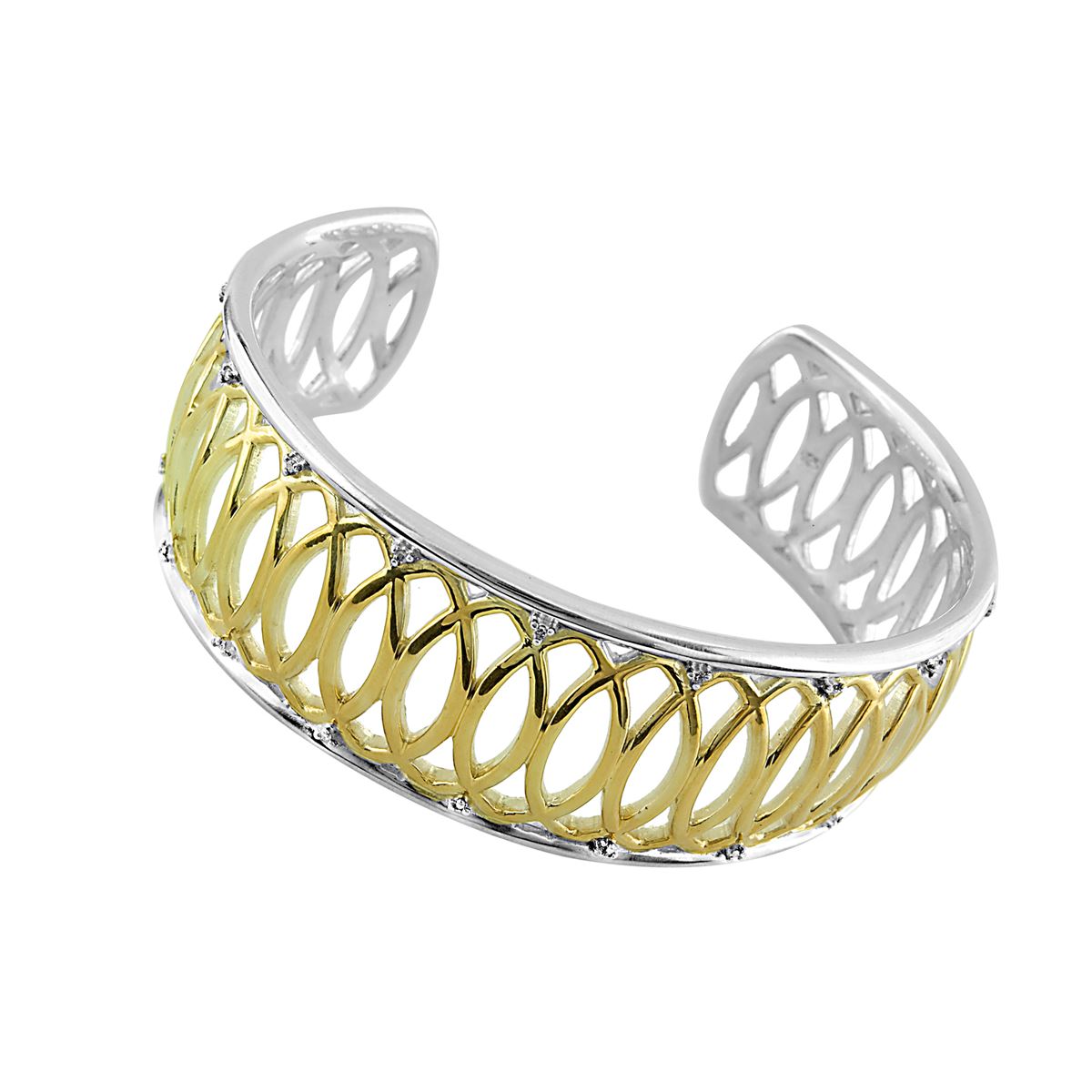 STERLING SILVER GOLDPLATED DIAMOND CUFF BANGLE (#7881D) TOTAL CT WEIGHT