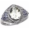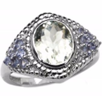 STERLING SILVER GREEN AMETHYST AND TANZANITE RING