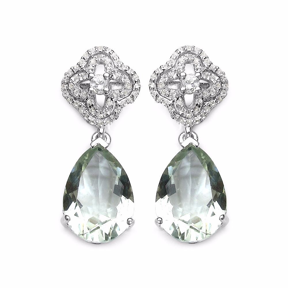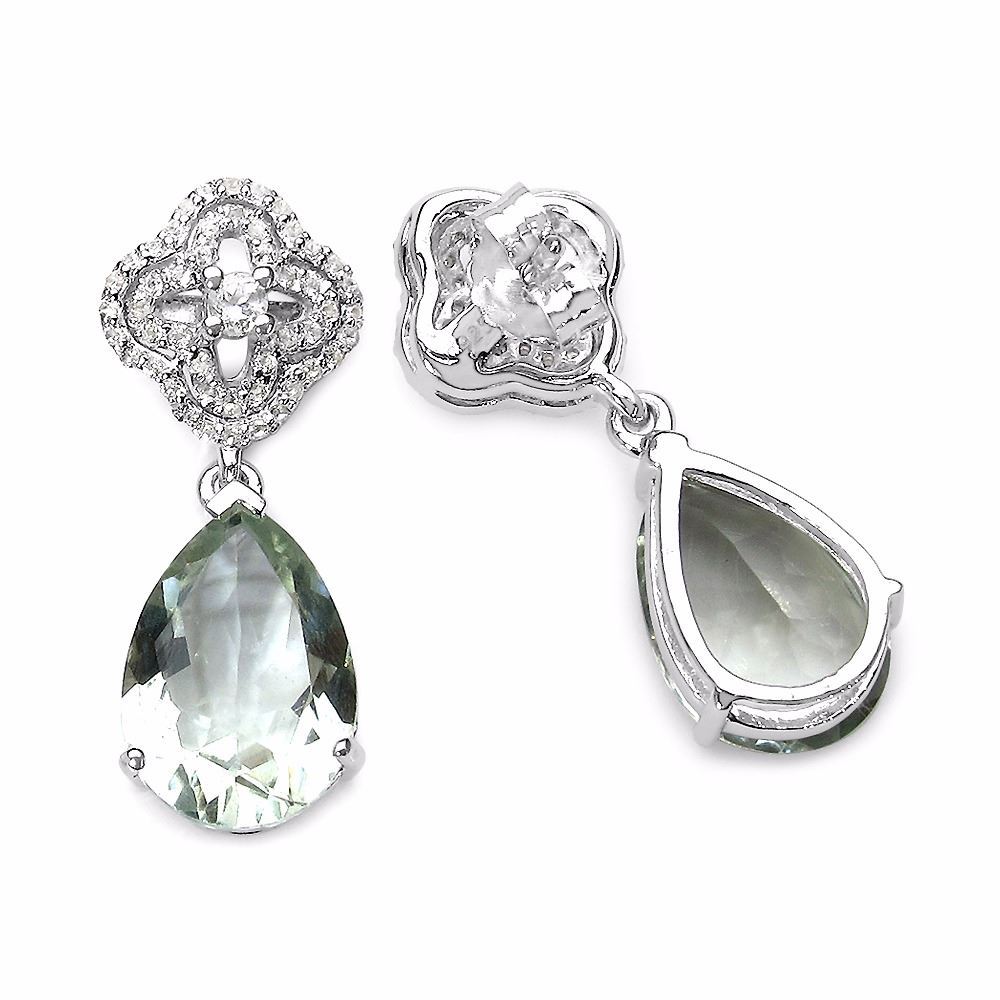 Gemstone Description: Green Amethyst Pears 14x10mm - 2Pcs + White Topaz Round 2.50mm - 2Pcs + White Topaz Round 1.00mm - 96Pcs ( Center Stone Height : 5.20mm )