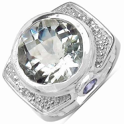 Gemstone Description: Green Amethyst Checker Board Round 12.00mm - 1Pc + Tanzanite ( A-A+ ) Round 3.50mm - 2Pcs + White Topaz Round 0.90mm - 2Pcs