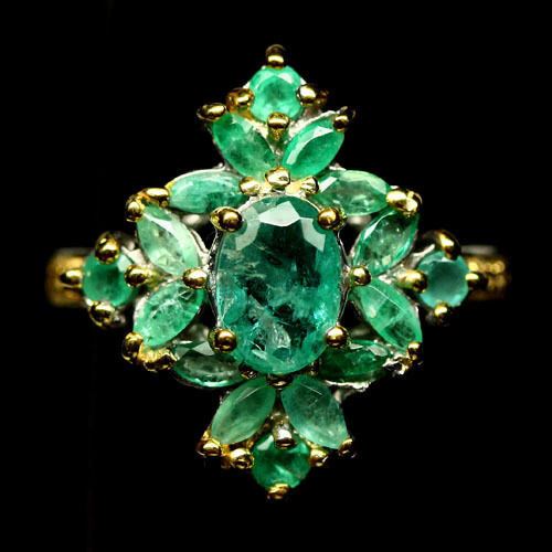 STERLING SILVER GREEN EMERALD LADIES RING - SIZE 6