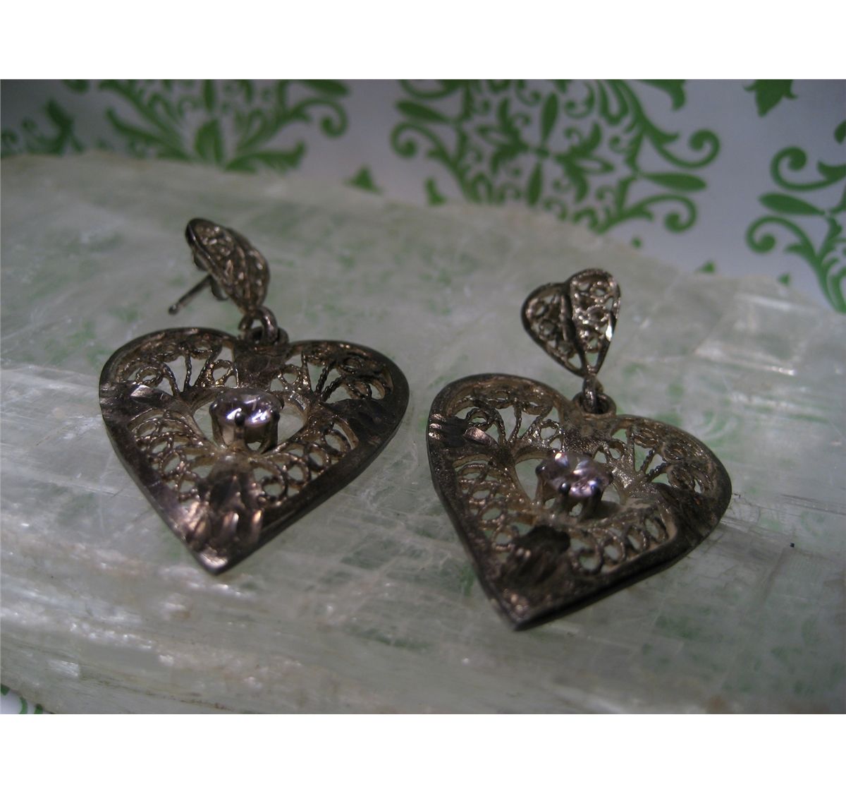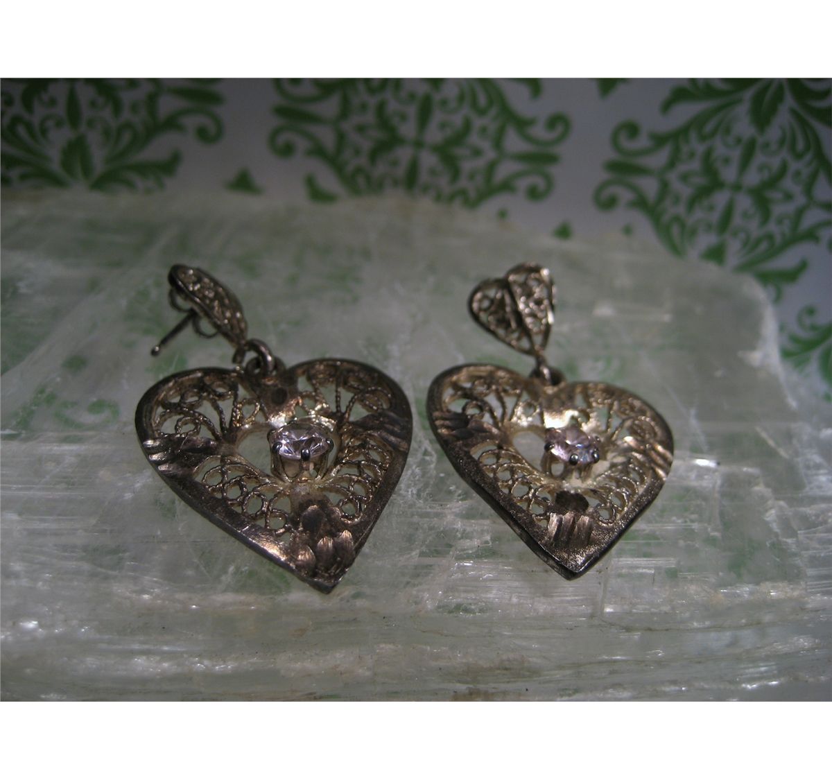 (1) STERLING SILVER HEART 925 Earrings WITH CZ STONES T.W. 7.3 GRAMS