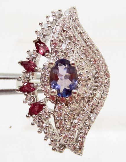 STERLING SILVER IOLITE & GARNET RING - SIZE 7
