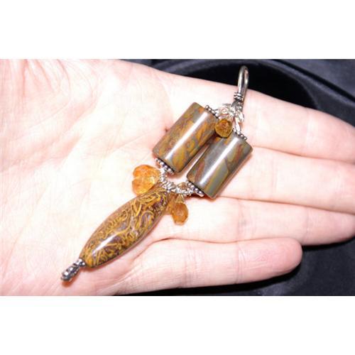 SAVE HUNDREDS!!! STERLING SILVER GENUINE MARBLE JASPER, BOULDER OPAL, CITRINE PENDANT!!! 136 CARATS!!! FREE INSURED PRIORITY SHIPPING!!!</em></td>
