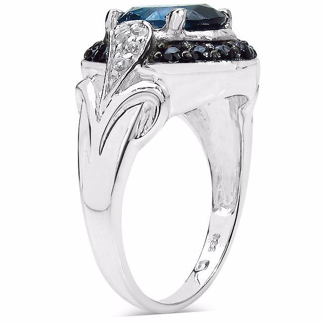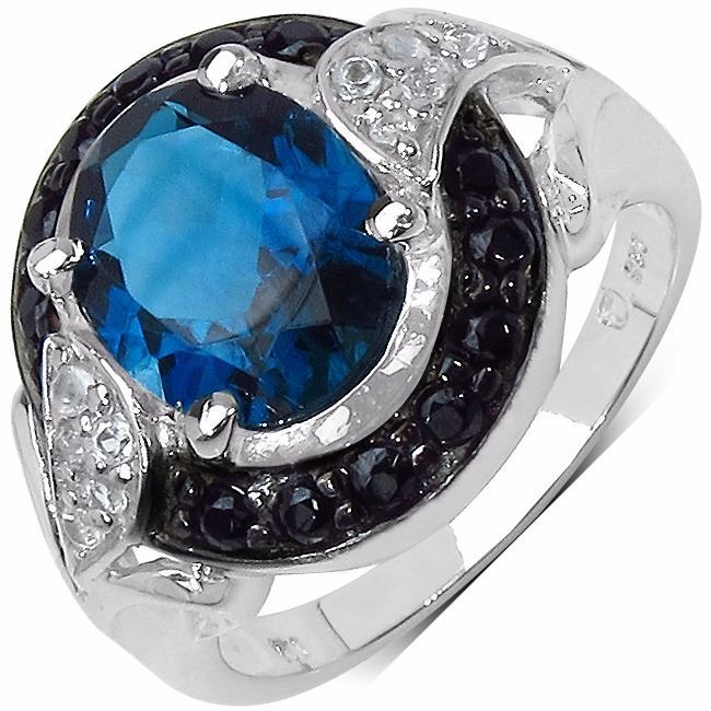STERLING SILVER LONDON BLUE TOPAZ AND BLACK SPINEL RING