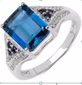 STERLING SILVER LONDON BLUE TOPAZ AND BLUE SAPPHIRE RING